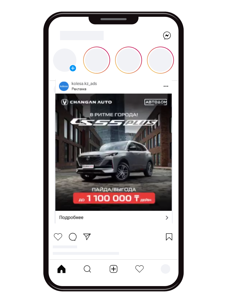 Таргетированная реклама в социальных сетях ориентирована на пользователей которые искали новые авто на сайте kolesa.kz